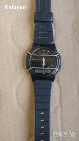 Продавам винтидж Casio AQW-5, made in japan. Модел от 80-те години, първи собственик от семейството, със защитната пластина и чисто нова оригинална каишка. Не беше ползван доста време, но работеше с избледнял дисплей- смених му батерията и тръгна, но аналога спря да работи и не иска да се сверява от горния бутон, по дигитала всичко работи и като звуци!