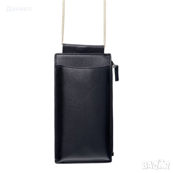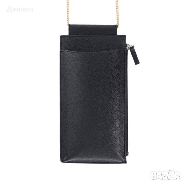 Чантичка тип портмоне за телефон, оборудвана с дълга регулируема презрамка.