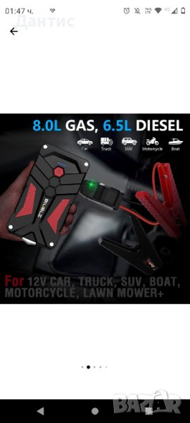 Автомобилен стартер, многофункционален стартов робот 2000A, с функция power bank 21800 mAh 12V, с LED фенер и USB порт, BiUBLE