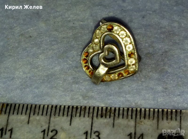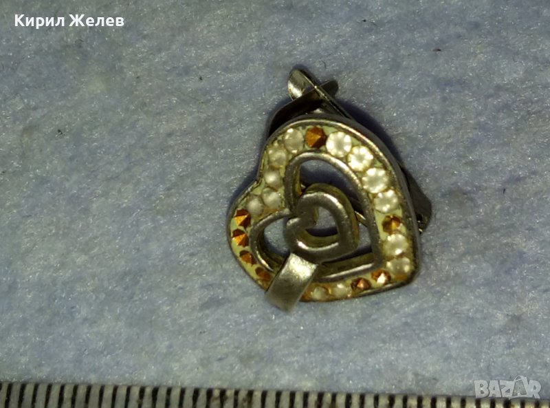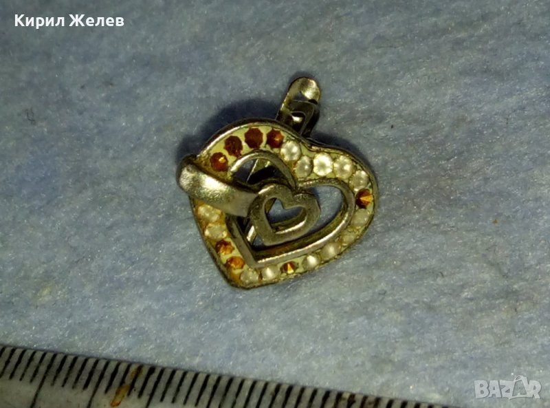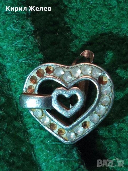 Две СЪРЦА в ЕДНО Стара СРЕБЪРНА АРТ ОБЕЦА с КРИСТАЛЧЕТА СРЕБРО 925 с АНГЛИЙСКО ЗАКОПЧАВАНЕ 40129