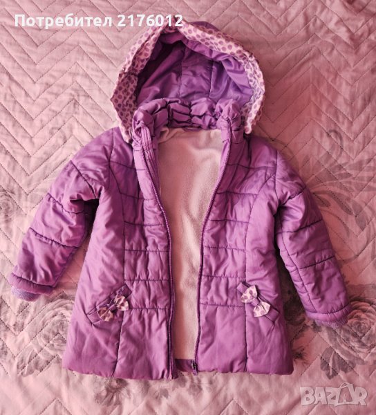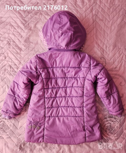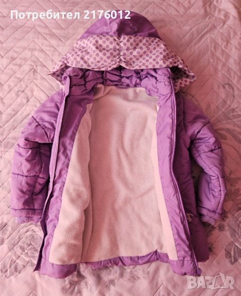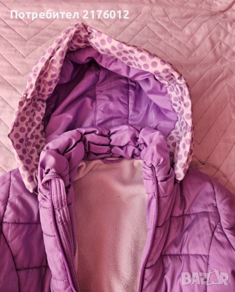 Лилаво зимно яке за момиче размер 110 с махаща се качулка и поларена подплата.