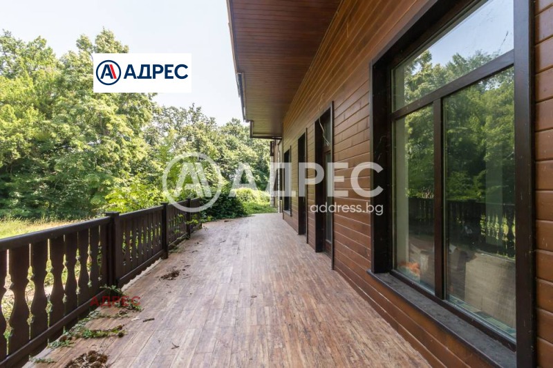 Монолитна двуетажна сграда с площ от 654 кв.м, отделно веранда 123 кв.м и озеленен двор с площ 3141 кв.м. Малък паркинг, градина, барбекю. Масивна ограда и портал с дистанционно управление.