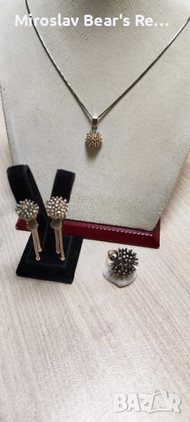 сребърен комплект " Стихия " , печати 925 върху всяко изделие , размер на пръстена 19мм (1.9см) Цени по отделно : Колие - 35лв Обеци - 50лв Пръстен - 60лв Цена заедно общо (145лв) - НЕ Само 120лв Изпращам с Еконт или Спиди а за района на град София предпочитам лично предаване. Разгледайте и другите ми обяви, има интересни бижута и аксесоари. Последвайте профилът ми , за да виждате първи ,какво публикувам и да можете да се възползвате.