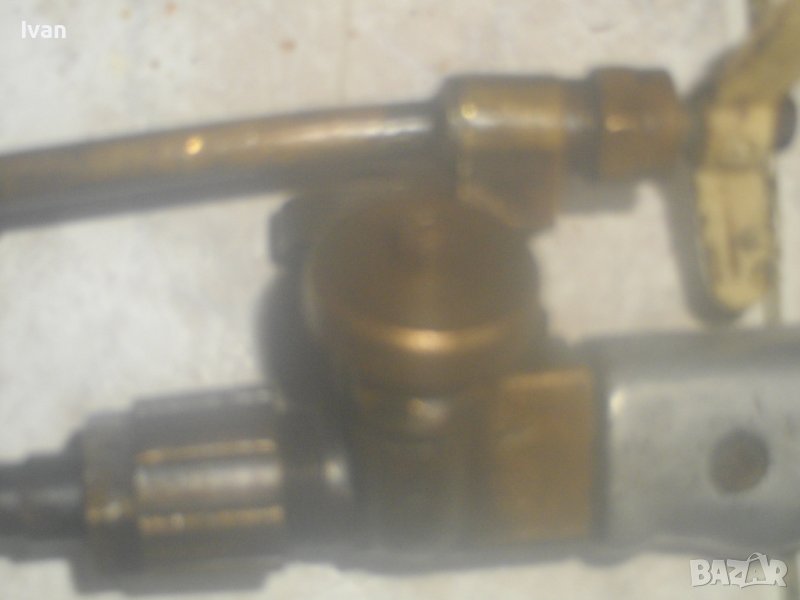 ОПИСАНИЕ на резак български старо соц качество - КРАКРА - дължина 550 мм - цена 299 лв. Производство ЗЗМ Перник. 1 рамо тръба бронзова с медна контактна дюза нови оригинални, дръжката е ползвана. В добро техническо/работно състояние. 2 въртока алумин и бронз, 2 щуцера ронзови поставени оригинални. Резака е масивен, като дръжката е от плътен алумин.