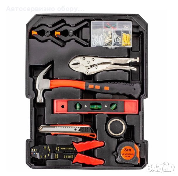 Сред инструментите ще откриете отвертки, френски ключове, клещи, макетни ножове, шестограни и много други, разпределени на четири нива, както следва: