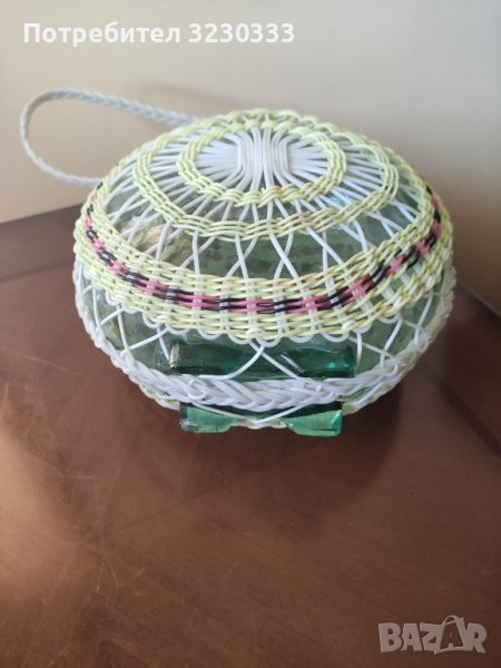 Стара, оригинална стъклена бъклица с оплетка, от миналото, отлично състояние. Вместимост 2 литра. Изпращам по Еконт с 10 % отстъпка от транспортната такса.