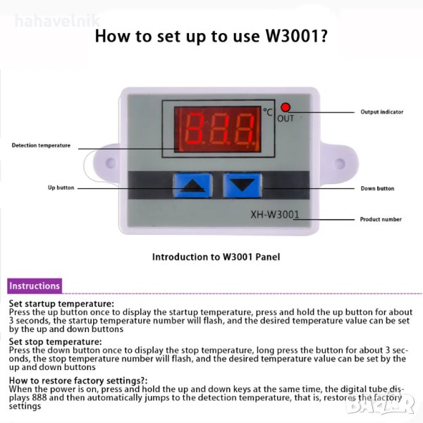 W3001 220V Автоматичен термо контролер за температура, термостат МОДЕЛ 31