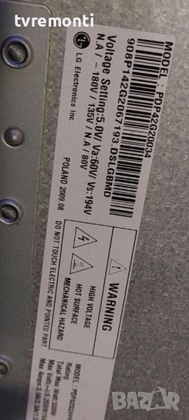 Logic CTRL Board - EAX60770101 - REV B - EBR63856403 for LG 42PQ1100 42inc DISPLAY PDP42G20034 борда е гарантирано работещ Демонтиран от телевизор LG модел 42PQ1100 със счупен дисплей PDP42G20034 тесвана от нашия техник