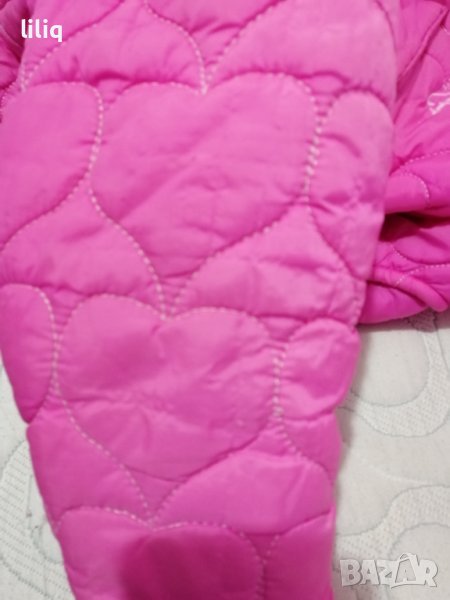 Много актуално яке, ватирано, страхотен дизайн и цвят, забележката е от вътрешната страна на ръкава, плата е леко надърпан