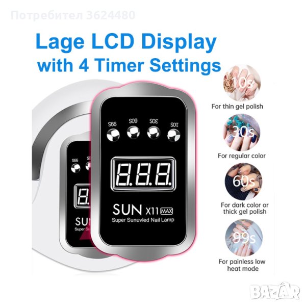 Професионална UV/LED лампа за маникюр, Sun X11 Max - 280W с 66 LED