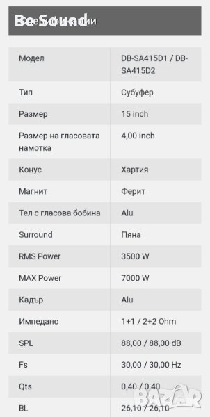SPL Субуфер 15" Deaf bonce DB-SA415 d2 3500w Rms 7000w Max , снимка 1 - Тонколони - 42500436 SPL Субуфер 15" Deaf bonce DB-SA415 d2 3500w Rms 7000w Max , снимка 2 - Тонколони - 42500436 SPL Субуфер 15" Deaf bonce DB-SA415 d2 3500w Rms 7000w Max , снимка 3 - Тонколони - 42500436 SPL Субуфер 15" Deaf bonce DB-SA415 d2 3500w Rms 7000w Max , снимка 4 - Тонколони - 42500436 SPL Субуфер 15" Deaf bonce DB-SA415 d2 3500w Rms 7000w Max , снимка 5 - Тонколони - 42500436 SPL Субуфер 15" Deaf bonce DB-SA415 d2 3500w Rms 7000w Max , снимка 6 - Тонколони - 42500436 SPL Субуфер 15" Deaf bonce DB-SA415 d2 3500w Rms 7000w Max , снимка 7 - Тонколони - 42500436 SPL Субуфер 15" Deaf bonce DB-SA415 d2 3500w Rms 7000w Max , снимка 8 - Тонколони - 42500436 SPL Субуфер 15" Deaf bonce DB-SA415 d2 3500w Rms 7000w Max , снимка 9 - Тонколони - 42500436 SPL Субуфер 15" Deaf bonce DB-SA415 d2 3500w Rms 7000w Max , снимка 10 - Тонколони - 42500436 SPL Субуфер 15" Deaf bonce DB-SA415 d2 3500w Rms 7000w Max , снимка 11 - Тонколони - 42500436 SPL Субуфер 15" Deaf bonce DB-SA415 d2 3500w Rms 7000w Max , снимка 12 - Тонколони - 42500436 SPL Субуфер 15" Deaf bonce DB-SA415 d2 3500w Rms 7000w Max , снимка 13 - Тонколони - 42500436 SPL Субуфер 15" Deaf bonce DB-SA415 d2 3500w Rms 7000w Max , снимка 14 - Тонколони - 42500436 SPL Субуфер 15" Deaf bonce DB-SA415 d2 3500w Rms 7000w Max , снимка 15 - Тонколони - 42500436 SPL Субуфер 15" Deaf bonce DB-SA415 d2 3500w Rms 7000w Max , снимка 16 - Тонколони - 42500436 SPL Субуфер 15" Deaf bonce DB-SA415 d2 3500w Rms 7000w Max , снимка 17 - Тонколони - 42500436 SPL Субуфер 15" Deaf bonce DB-SA415 d2 3500w Rms 7000w Max , снимка 18 - Тонколони - 42500436 1/18