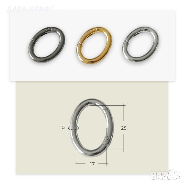 Метална халка с отваряне за презрамки на чанти, сакове, раници