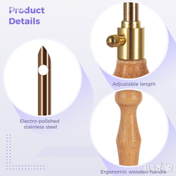 Иглите в този комплект са изработени от здрав и устойчив на корозия месинг, гарантиращ издръжливост и дълготрайност. Ергономичните дървени дръжки са едновременно леки и здрави, предлагайки перфектния баланс между комфорт и издръжливост.