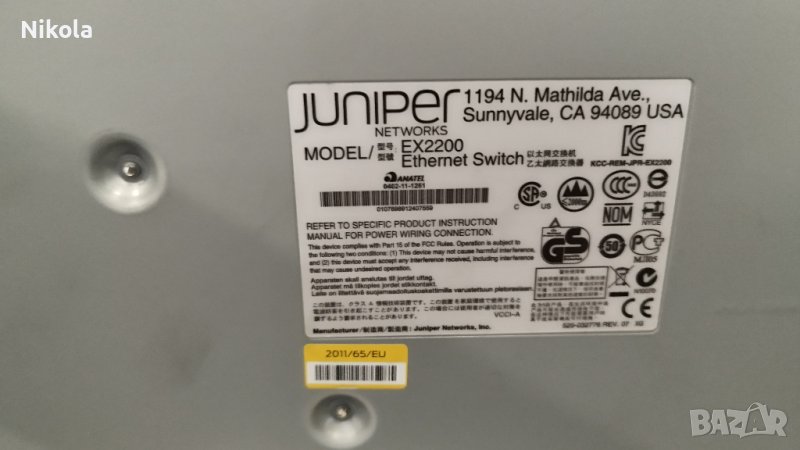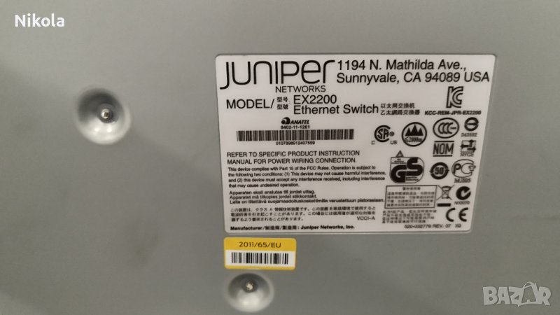 Продавам Juniper Networks EX2200 Ethernet Switch EX2200-24T-4G, суича е използван и всичко по него работи . За повече информация вижте снимките с табелките на суича.