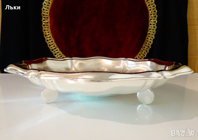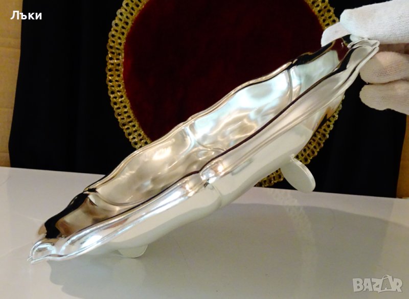 от бронз,дебело посребрена с висока проба сребро.Има дизайн на цвете с красив