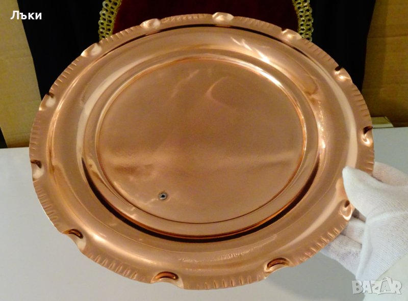 Старинно белгийско медно плато,поднос,фруктиера,съд за