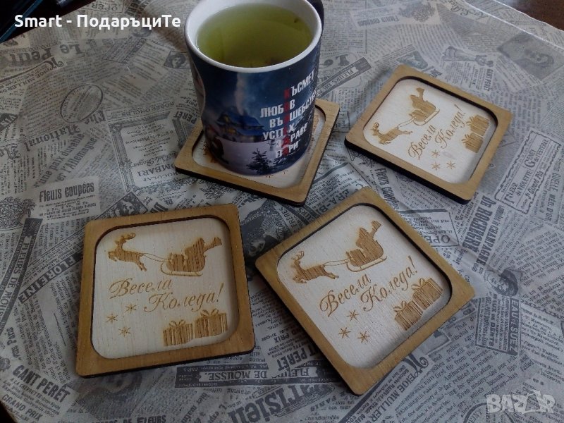 Дървени книгоразделители, подложки за чаши за Коледа → Обява 42505293