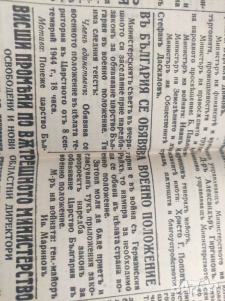 вестник " Зора " 9 септември 1944 → Обява 42505515