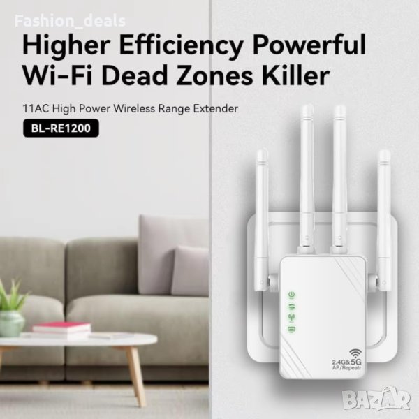 Нов двулентов антисмущаващ WiFi усилвател 1200Mbps 2.4GHz/5GHz