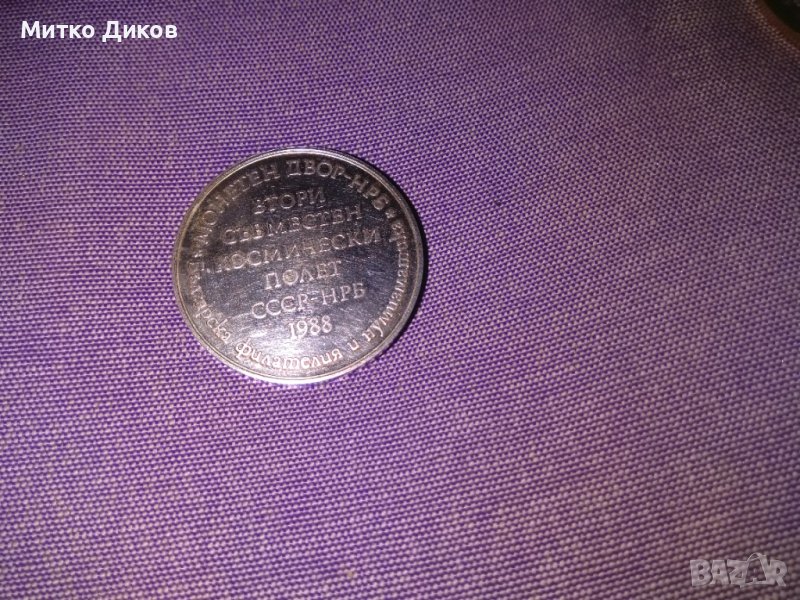 Почетни плакети в кутия от първи 1979 и втори 1988г. космически полети-фи 53 и фи 38мм-цената на на първи полет жълтата е 55 лева-втори полет 20лева -двете заедно за 60лева-отлично състояние особено първи полет-кутиите не са оригинални-изпращам по еконт-по спиди