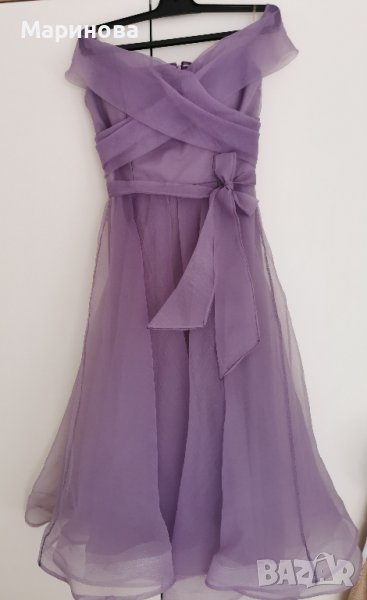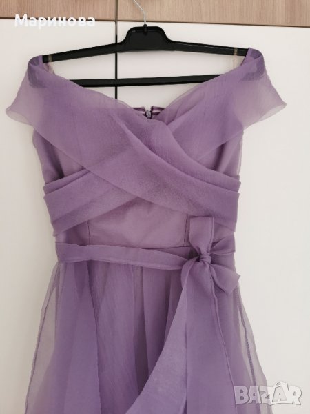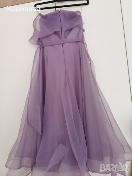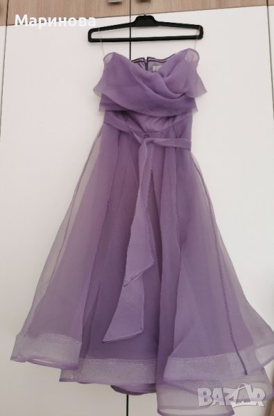 Роклята е ползвана за фотосесия. Неразличими от нова. Купувана е от Catty за около 250 лв. Размер М. Връзката може да се върже отпред, отзад и отстрани. Има вградени подплънки. Много е красива и лека. Цвят люляк.