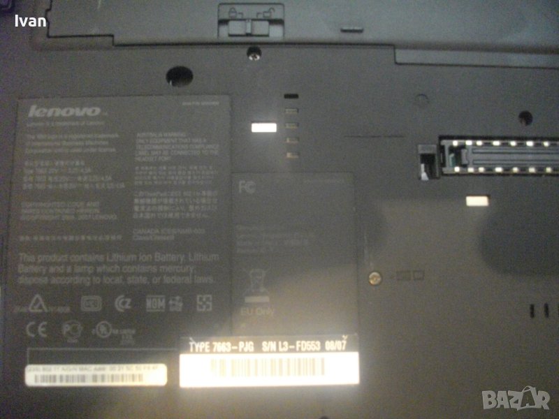 Лаптопа се предлага без зарядно. 20 V - 3,25А /4,25А - зарядното трябва да е с по-широките букси за Леново и Дел 20 волта. Лаптопа е оригиналното канадско произовдство - Made in CANADA, с DVD. Батерията се зарежда и държи след зареждане. Вклчва самостоятелно без зарядно. Серия Energy Star. Стикер за процесор Intel Sentrino V Pro.