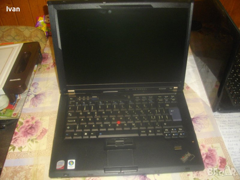 Лаптопа работи, зарежда веднага за секунда, но е заключен на потребител и трябва нова преинсталация. В момента е с оригиналната си инсталация Windows Vista Bisiness. Не съм го отварял отзад капака за да видя характеристики на рам памет и хард диск. Процесора е стандартен за модела Intel Core Duo. Размери на матрицата - 14,1 инча. Без забележки. Клавиатура отлична на латиница.