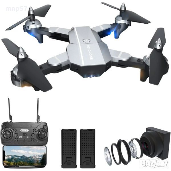 Нов WiFi-FPT дрон с 90 град.wide-angle HD 1080p предна и 720р долна камери.360 град.завъртане и превъртане,поддържане на височина,3 скорости на движение,предупреждение за слаба батерия,20/25 мин.полет.Видео и снимки в HD качество с бутон и жестове.