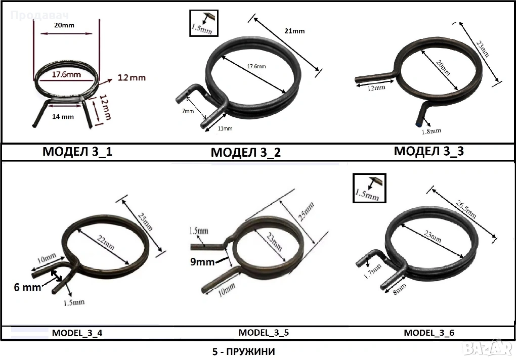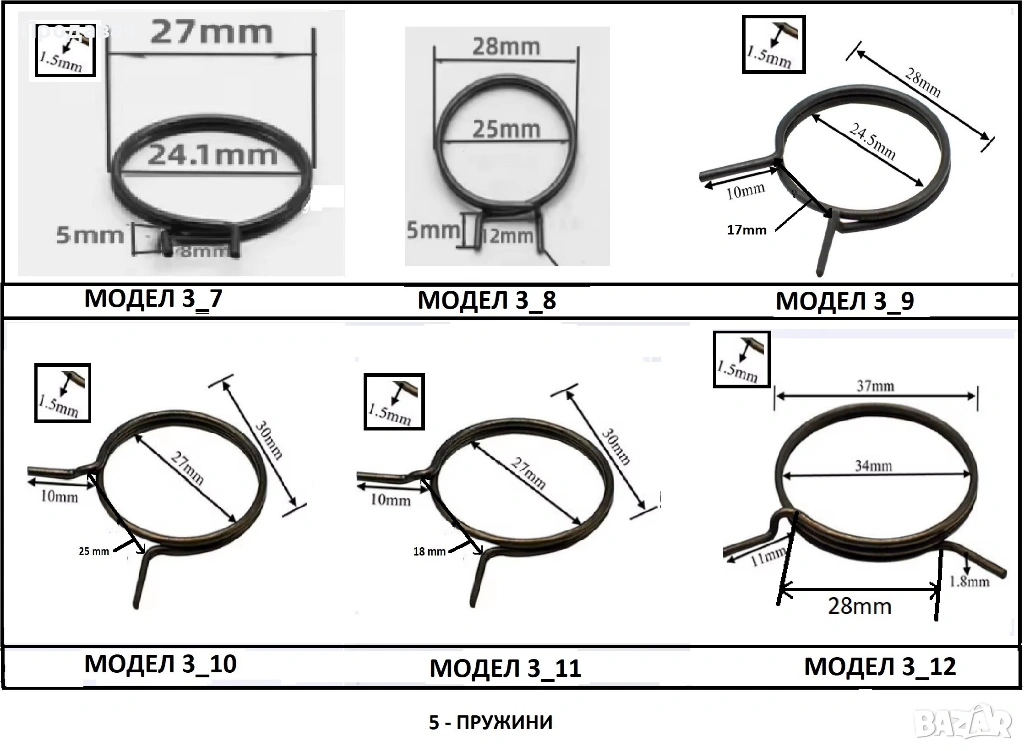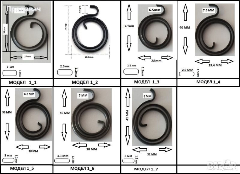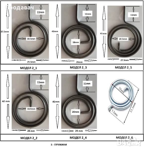 Имам различни размери пружини. Ако ви трябват различни от снимките размери, можете на вайбър да ми изпратите снимка с вашите размери и модела.