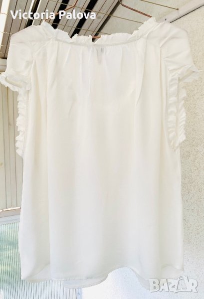 Красива блуза цвят екрю -нежна , въздушна, премиална класа, бранд JOIE, италиански дизайнер SERGE AZRIA .Кройка кроп ( балон ), ГО - 72см, дължина - 65см.