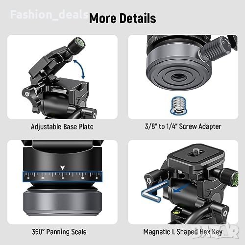 Въпреки компактния си размер - с височина само 3,9" (98 мм) и тегло 16,2 унции (460 г) - тази здрава флуидна глава от алуминиева сплав може да издържи значително максимално натоварване от 8,8 lb/4 kg. Тя е идеална за различни приложения, включително влог, пейзажна фотография, предаване на живо, портрети и др.