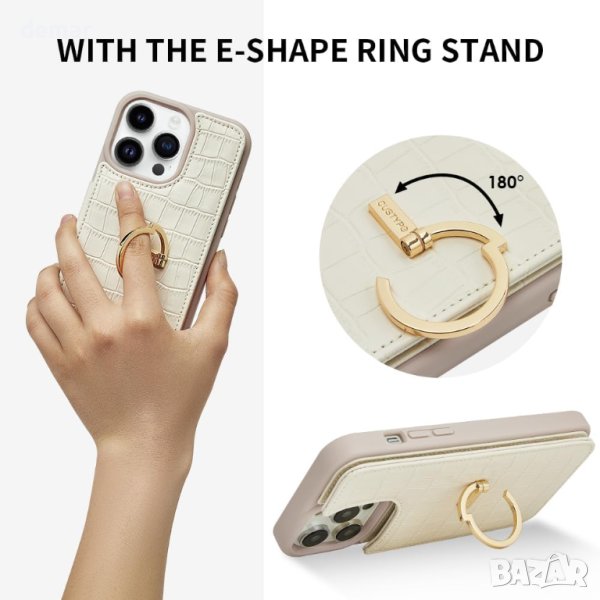 iPhone 15 Pro Max 6.7", този кожен калъф CUSTYPE разполага с 4 слота за карти, действащи като мини портфейл с немагнитна двойна закопчалка. Оборудван е с стойка с пръстен във формата на E, предлагаща възможност за обръщане на 180° за ръцете -безплатно гледане.Осигурява защита, той има повдигнати устни отпред и камерата и омекотяване в ъглите, за да предпази от изпускане.Изработен от микрофибърна кожа, показваща уникален модел на алигатор, той е едновременно стилен и функционален.