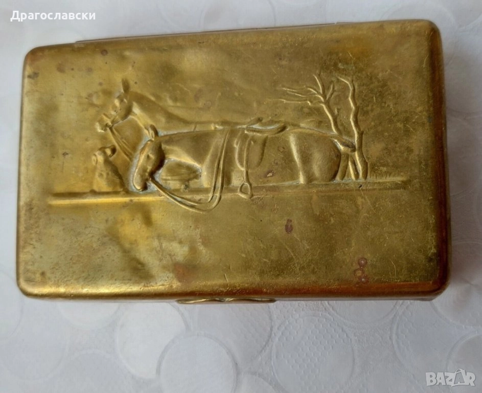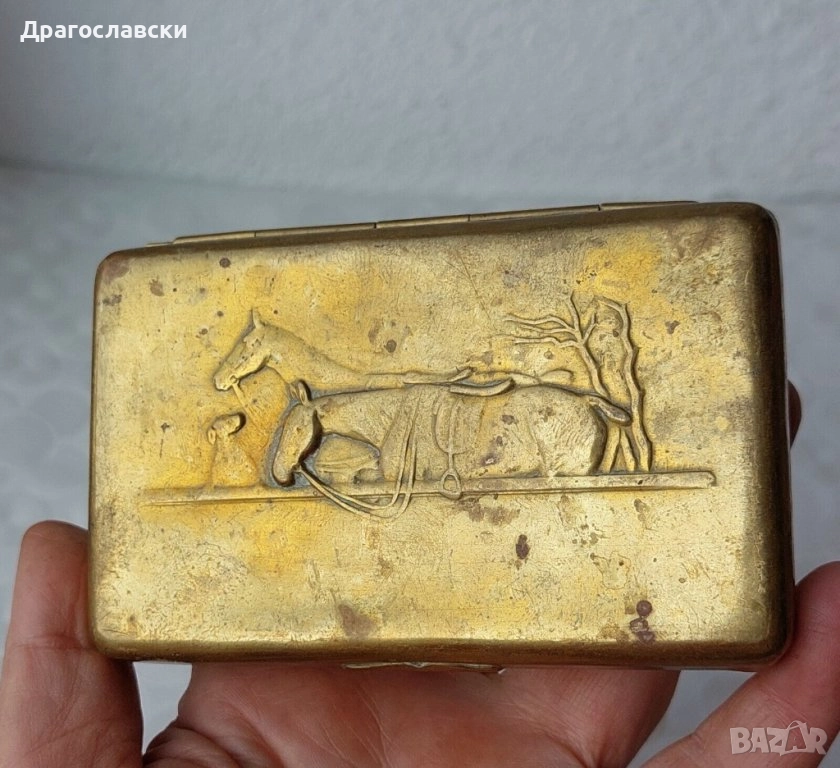 - Стара месингова табакера с кон, коне - 33 евро