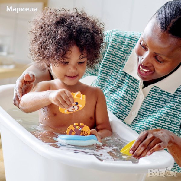 Пуснете във ваната плаващата червена панда - чудесна играчка за подпомагане на развитието. Детето ви ще се забавлява да насочва пандата във водата, както и да я изкъпе с кофата, която пасва идеално в пръстена, докато пандата плува. Пръстенът се отваря за лесно изплакване, за да можете лесно да поддържате играчката хигиенично чиста баня след баня.