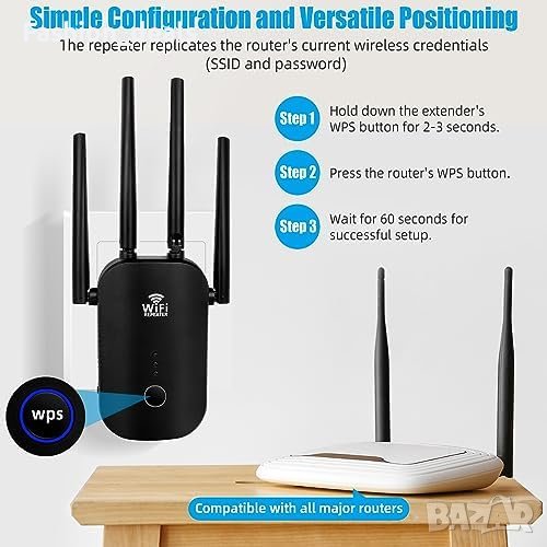 Нов 1200Mbps WiFi удължители усилвател на сигнала за дома Антена интернет