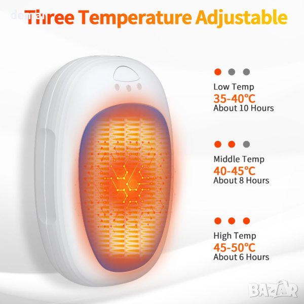Останете топли с нашите модернизирани акумулаторни нагреватели за ръце от 2 опаковки, включващи двустранно отопление. Те могат да бъдат комбинирани като едно или разделени за двойна употреба. С акумулаторна батерия 2000 mAh x 2 всяка опаковка предлага 6-10 часа непрекъсната топлина, идеална за различни дейности като къмпинг, туризъм или дори просто четене. Изпитайте бързо загряване за 2 секунди с три регулируеми температурни нива, от които да избирате. Изработени от висококачествени материали, тези нагреватели за ръце гарантират безопасност и дълготрайност, разполагащи с USB-C порт за бързо 4-часово зареждане. Опаковани изискано, те са перфектен зимен подарък за любимите хора.