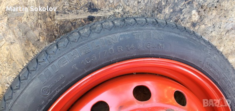Michelin патерица от Fiat Tempra неизползвана! Междуболтово 4х98 и централен отвор 58,1. Размер на гумата - 105/70/14 .