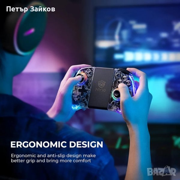 【LED светлини】: Уникалният дизайн на контролера NYXI с вградена многоцветна светлинна лента. Предлага 2 режима на осветяване, режим на постоянна светлина и режим на дишане, можете да промените цвета и яркостта на контролера, за да получите по-добро игрово изживяване. Разбира се, можете също да изберете да изключите осветлението.