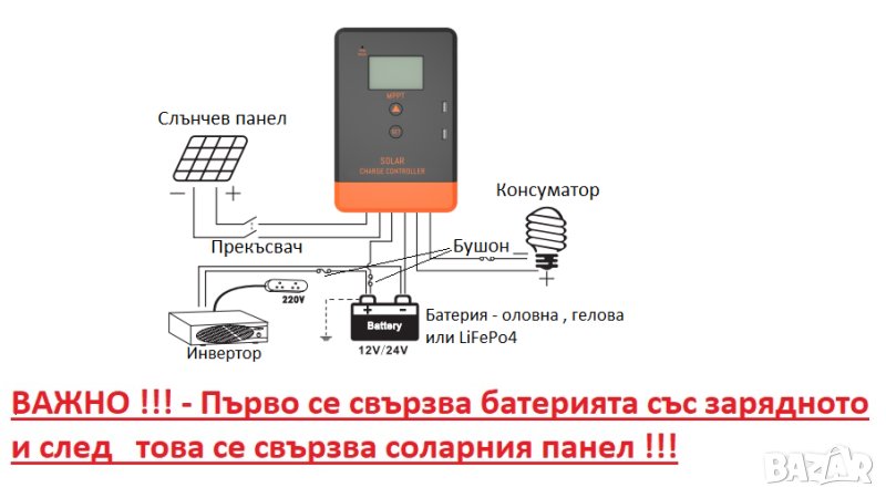 -Зарежда следните видове батерии - оловни , гелови и LiFePo4