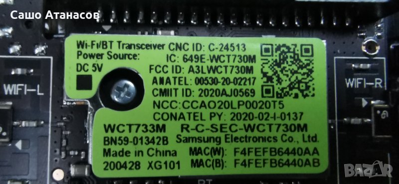 Wi-Fi/BT Transceiver/IR/POWER Button Board : BN59-01342B / WCT730M - не е наличен