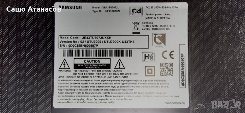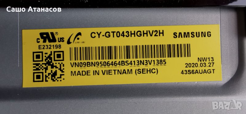 Модули от телевизор SAMSUNG UE43TU7072U със счупена матрица (панел CY-GT043HGHV2H / BN95-06464B )