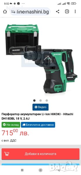 Перфоратор на батерия HITACHI DH18DBL → Обява 42516767