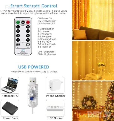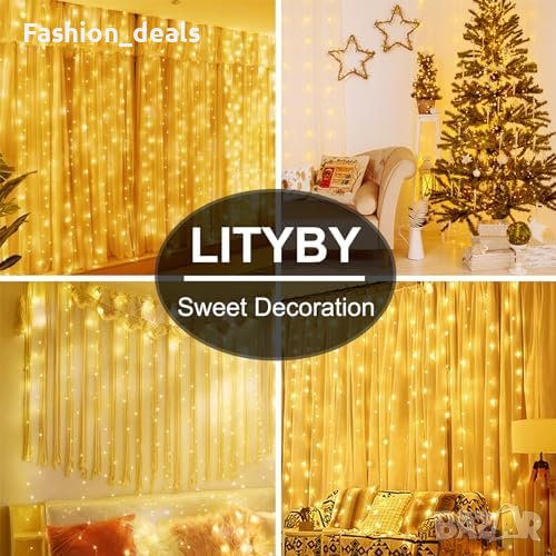 Нови 300 LED феерични светлини завеса за спалня 8 режима Декорация Дом Украса