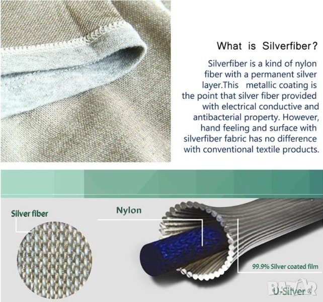 Състав: 42% сребърни нишки, 53% памук, 5% полиестер