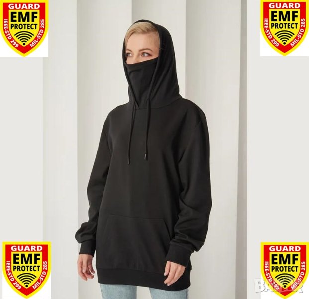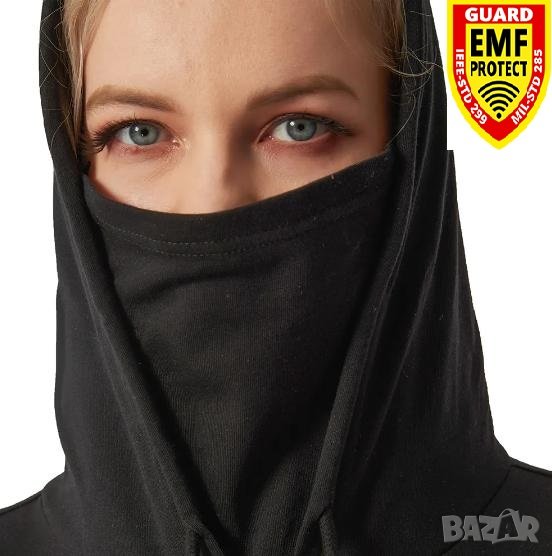 Екраниран Суичър със Сребърни Нишки Защита от Електромагнитно Излъчване Качулка Цялостна Защита Лице