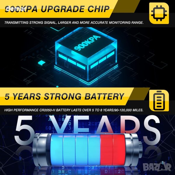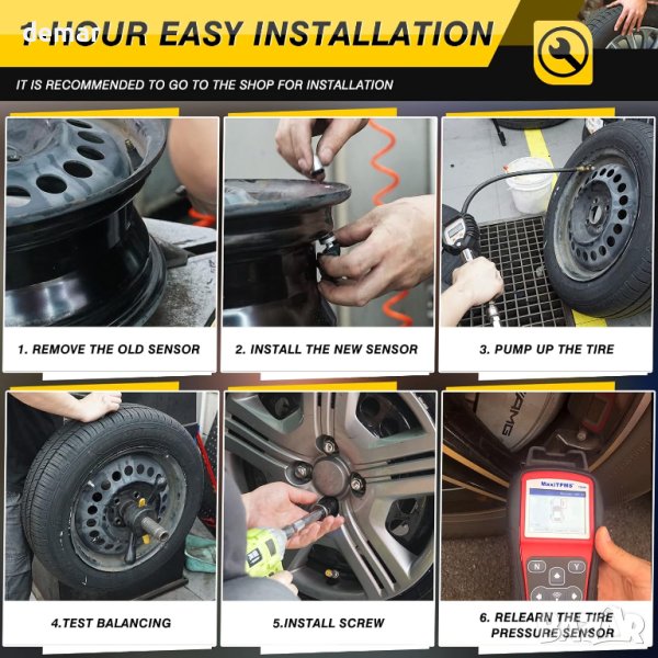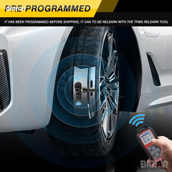 Смяна на сензор за налягане в гумите Съвместим с Mercedes-Benz Vario T2N 2014-03 до 2022, за Mercedes-Benz V-Class VS20 2014-03 до 2022, за Mercedes-Benz V-Class W638 2014-06 до 2022, за Mercedes-Benz LCV VS20 2014-08 до 2023-07, за Mercedes-Benz VS20 2014-06 до 2022, за Mercedes-Benz W639 2014-03 до 2022, за Mercedes-Benz VS20 2014-07 до 2022 Смяна на OE номер, подходящ за Mercedes Tpms сензор: 4479050500, A4479050500, A4479050500Q01 След като сензорът Tpms се регистрира към превозното средство, продължава да предава силата на сигнала, за да комуникира перфектно с TPMS модула на вашето превозно средство, което може да подобри издръжливостта и надеждността на превозното средство. Нашият предварително програмиран сензор Focus Tpms с честота 433MHZ, идва готов за сдвояване със съвместимо превозно средство, сензорът за налягане в гумите просто трябва да се научи отново след инсталирането Разликата между добро качество и лошо качество е чипът и батерията. Нашият сензор за гуми Tpms е оборудван с високопроизводителна CR2050-H батерия и 900kpa чип, чийто живот продължава над 5 до 8 години/или 90-120 000 мили