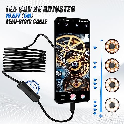 IP67 водоустойчив дизайн със сонда с диаметър 7,9 мм и 8 регулируеми LED светлини.