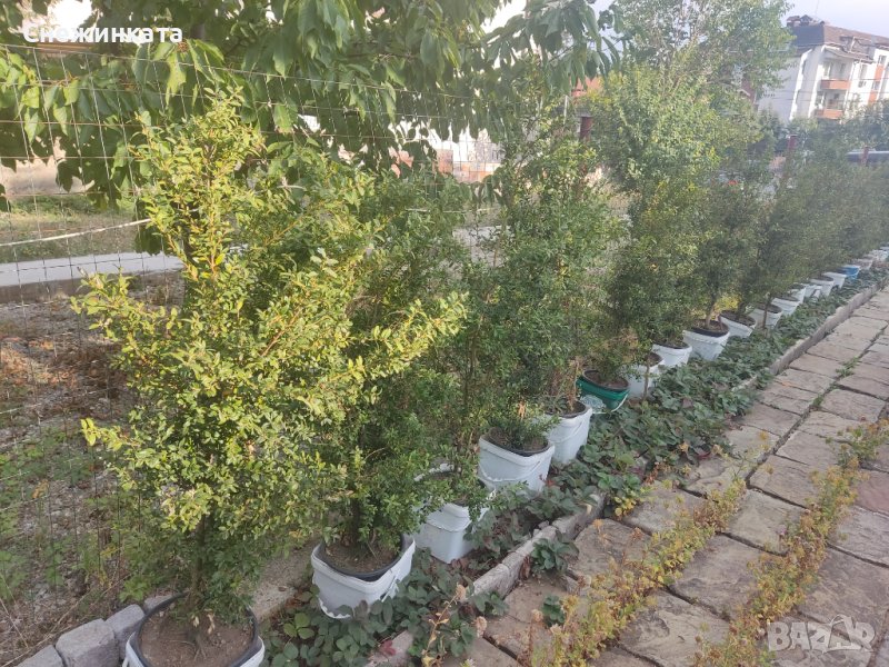 Продавам красиви вечнозелени дървовидни чемшири. Високи са над 120 см, цената им зависи от броя и височината им и съответно е 18-25лв/броя. За всеки 5 броя получавате подарък ружа. За повече бройки е възможен коментар на цената. Чемширите имат много добре развита коренова система и реално цялата саксия е пълна с корени. Растенията се продават без саксии.