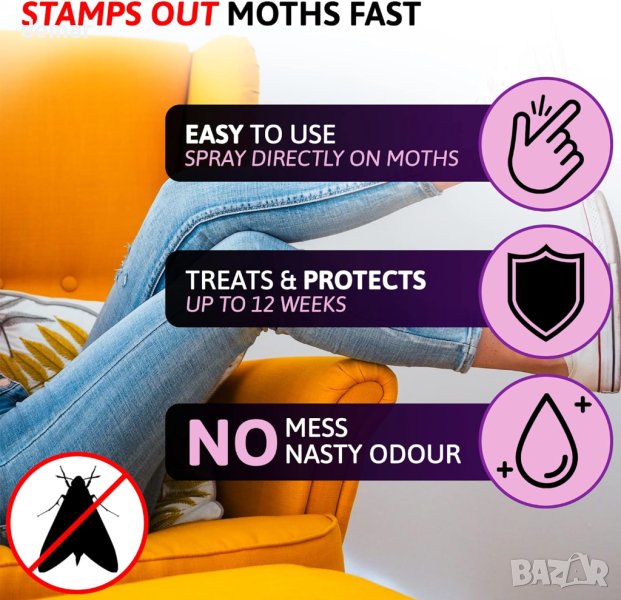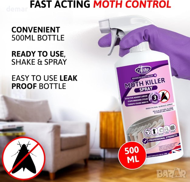 Елиминирайте молците и защитете дома си с нашия спрей против молци с тройно действие, който е насочен към всички етапи на растеж, прекъсвайки цикъла на размножаване за дълготрайни резултати. Тази бързодействаща формула с слаб мирис предлага незабавна и постоянна защита, подходяща за гардероби, килими и под мебели. Ефективен не само срещу молци, но и срещу килимни бръмбари. Работата от професионален клас осигурява бързи и надеждни резултати, което го прави доверен избор за живот без молци. Препоръчва се тестване преди употреба. Третирайте повторно, ако е необходимо, за да поддържате среда без молци.