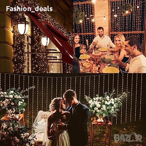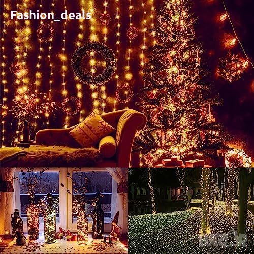 Нови Слънчеви 300 LED светлини лампички за завеси 3x3м. Декорация Украса Дом